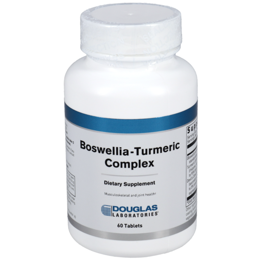 Boswellia serrata, Turmeric root, and Devil's claw Boswellia-Turmeric Complex contains a high dose combination of two standardized botanical extracts: Boswellia serrata and turmeric root, with the addition of Devil™s Claw root. This formula can help provide normal recovery support after exercise or activity of the joints and muscles.*